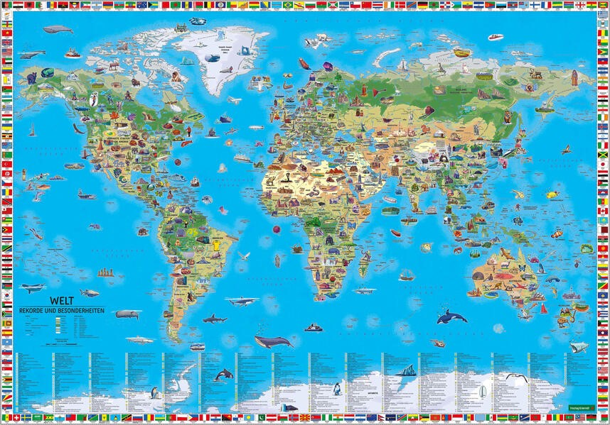 137,5 x 96 cm, Rekorde der Welt, illustrierte Kinderweltkarte