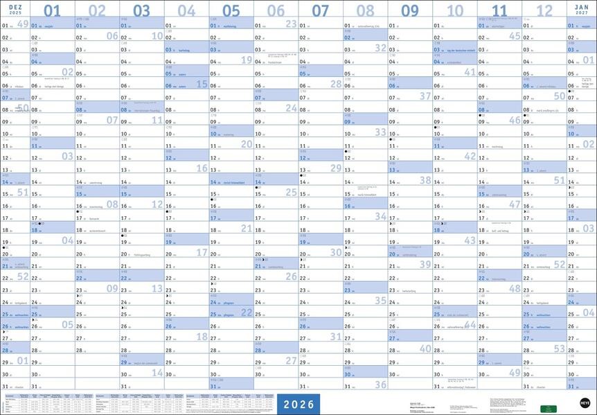 Der XL-Organizer für die Wand im schlichten und minimalistischen Design: unser Poster-Jahresplaner 2026 in Blau